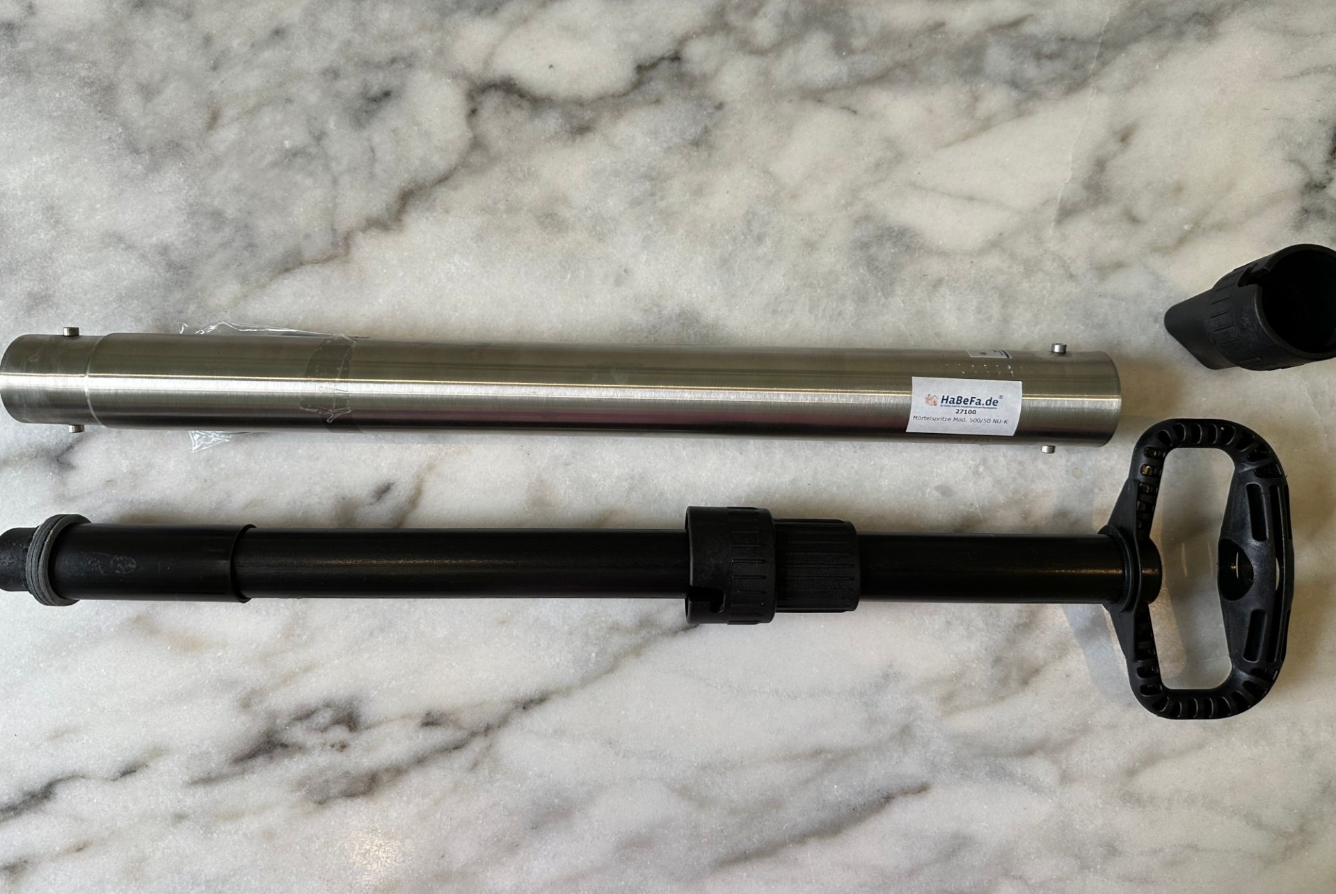 Bitte reinigen Sie Ihre Mörtelspritze nach jedem Gebrauch gründlich mit Wasser. Lösen Sie dazu die Verschlusskappe und ziehen Sie die Kolbenstange aus dem Pumprohr. Nehmen Sie die Dichtung von der Kolbenstange und spülen Sie das Einstellgewinde, die Dichtung und das Pumprohr gründlich mit Wasser ab.